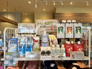 ミリオンペット逢谷内店では、特設コーナーで酵素系のお手入れ用品や菌の力で体の内側を整えるサプリメントをご用意しております♪